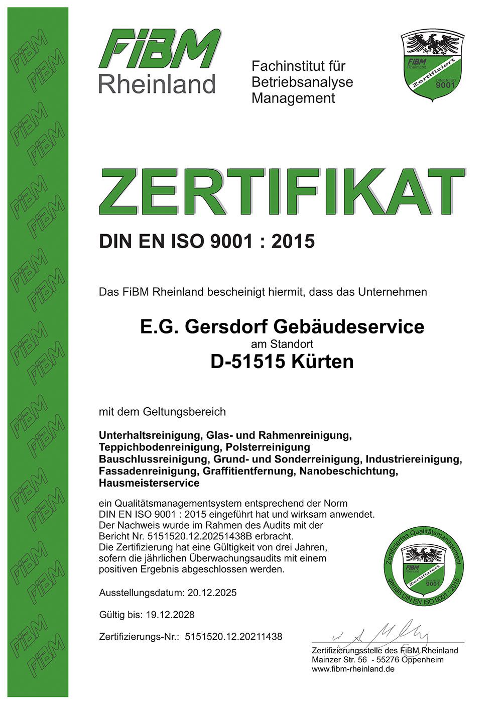 Zertifizierung Qualitätsmanagementsystem DIN EN ISO 9001:2015