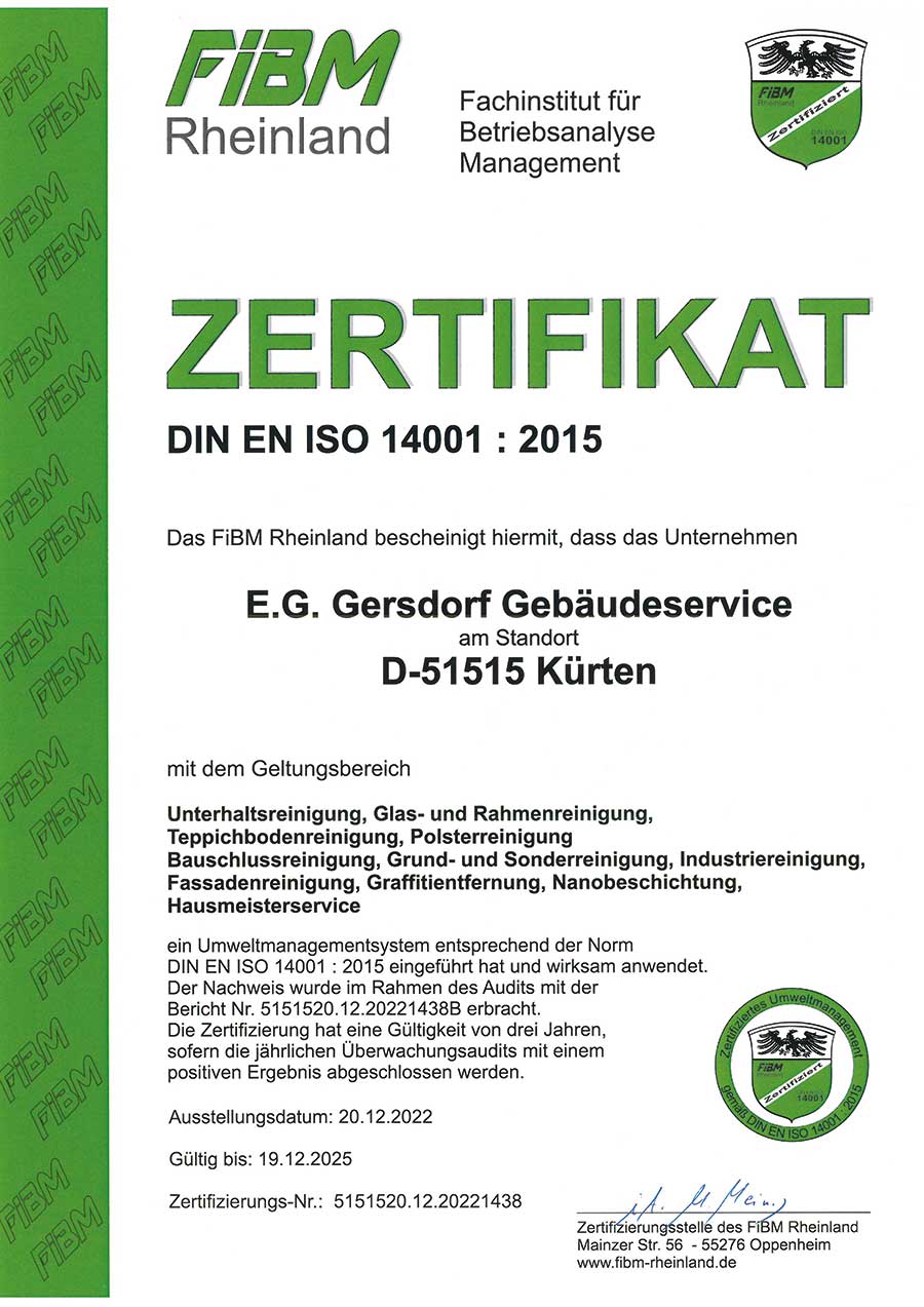 Zertifizierung Umweltmanagementsystem DIN EN ISO 14001:2015